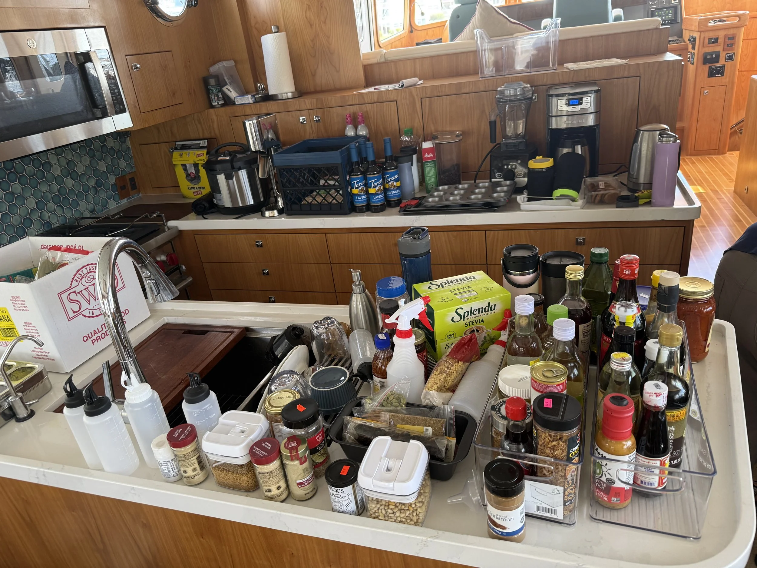 Admiral, that is my spouse, is very Internet-savvy. She had read on different websites and YouTube videos that food in the Bahamas is very expensive, so we should stock as much as we can. A 60' trawler has so much space. As a result, we have bought too much, in my opinion. I hope that by the time we return from the Bahamas, we will have a clearer idea of what to take with us.